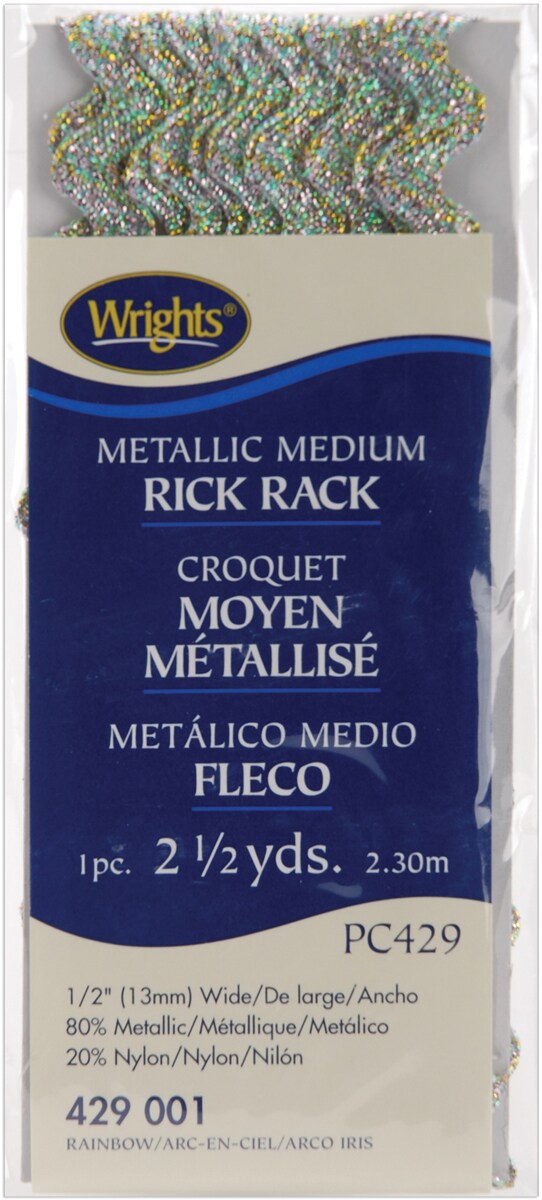 Wrights Medium Metallic Rickrack .5"X2.5yd-Rainbow