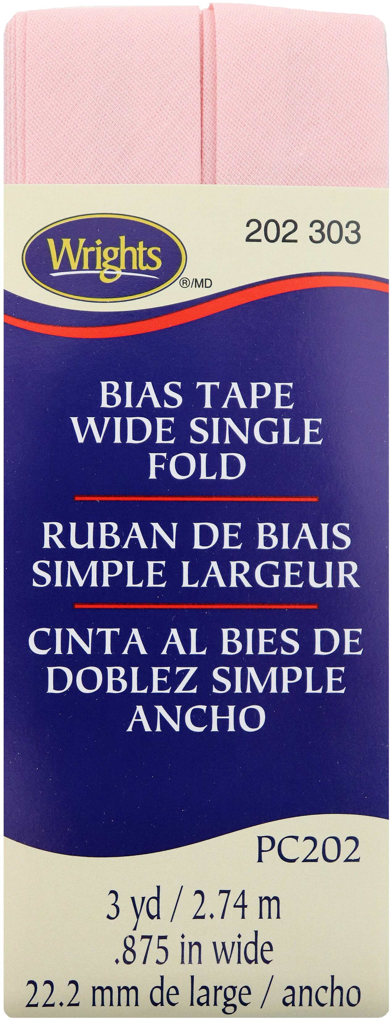 Wrights Single Fold Bias Tape .875"X3yd-Light Pink