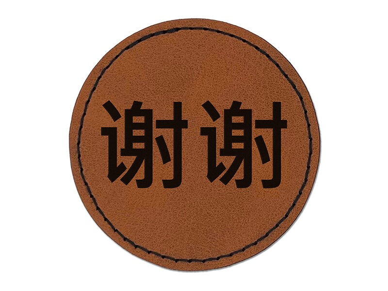 Xiexie Chinese Characters Thank You Round Iron-On Engraved Faux Leather Patch Applique - 2.5"