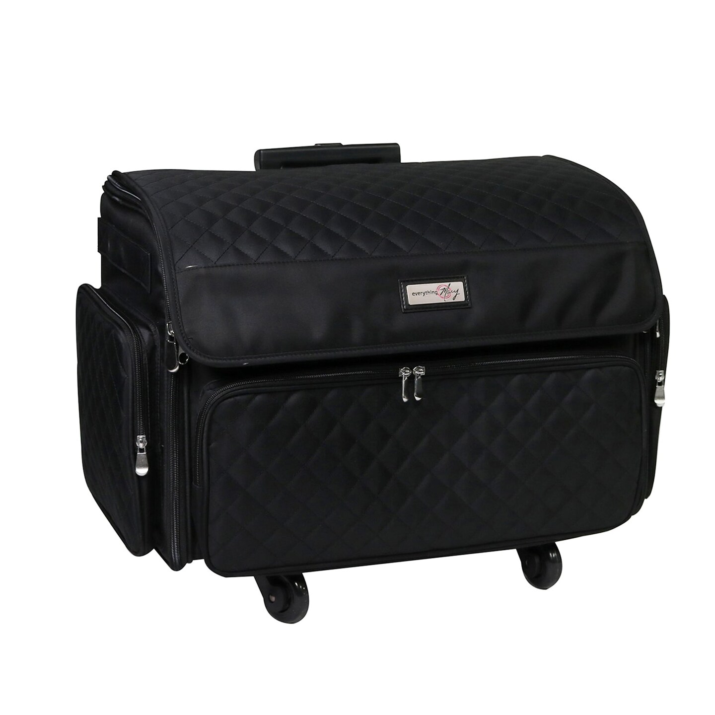 XL 4 Wheel Collapsible Deluxe Rolling Sewing Machine Storage Case, Black Quilted