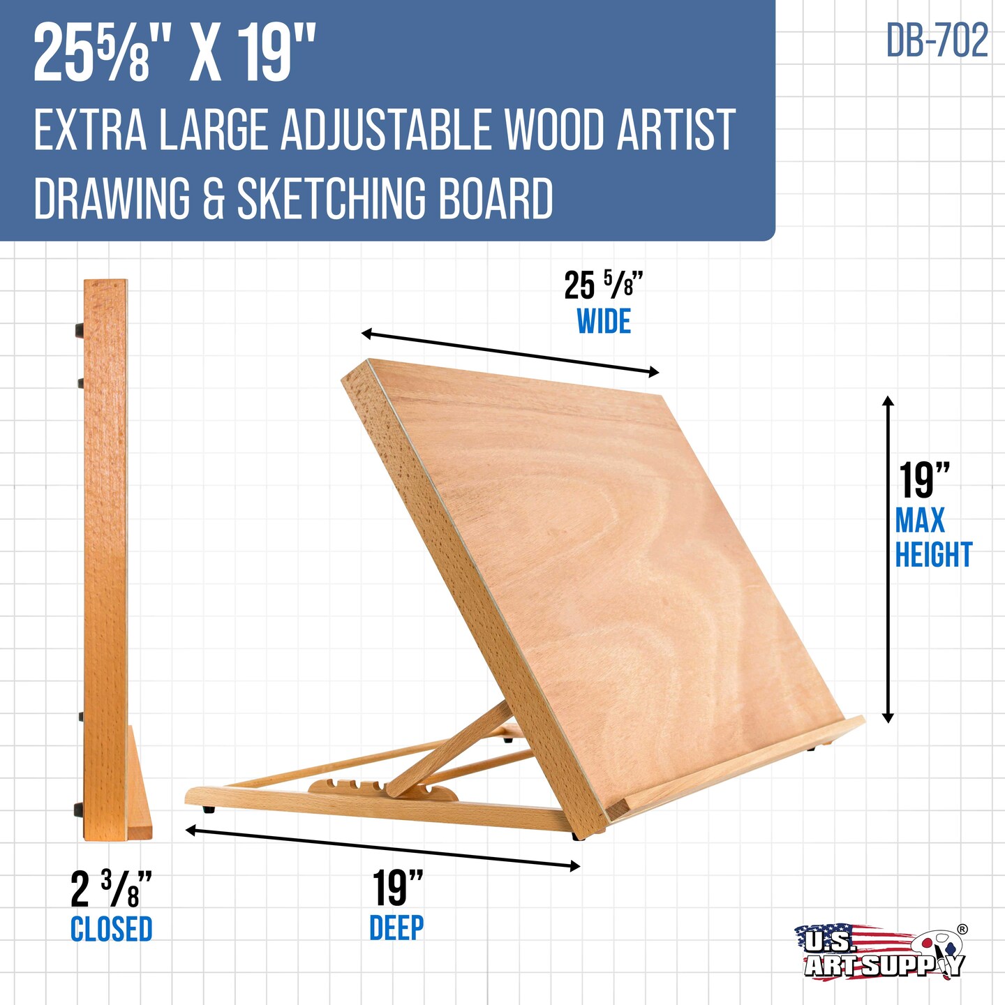 X-Large 25-5/8" x 19" (A2) Wooden Drawing Board, Adjustable Table Top Easel for Painting and Drawing - Drafting Board with Pencil Ledge, Locking Storage Drawer