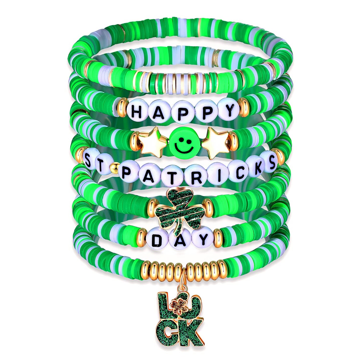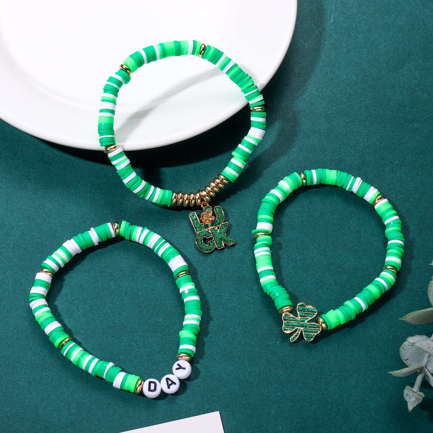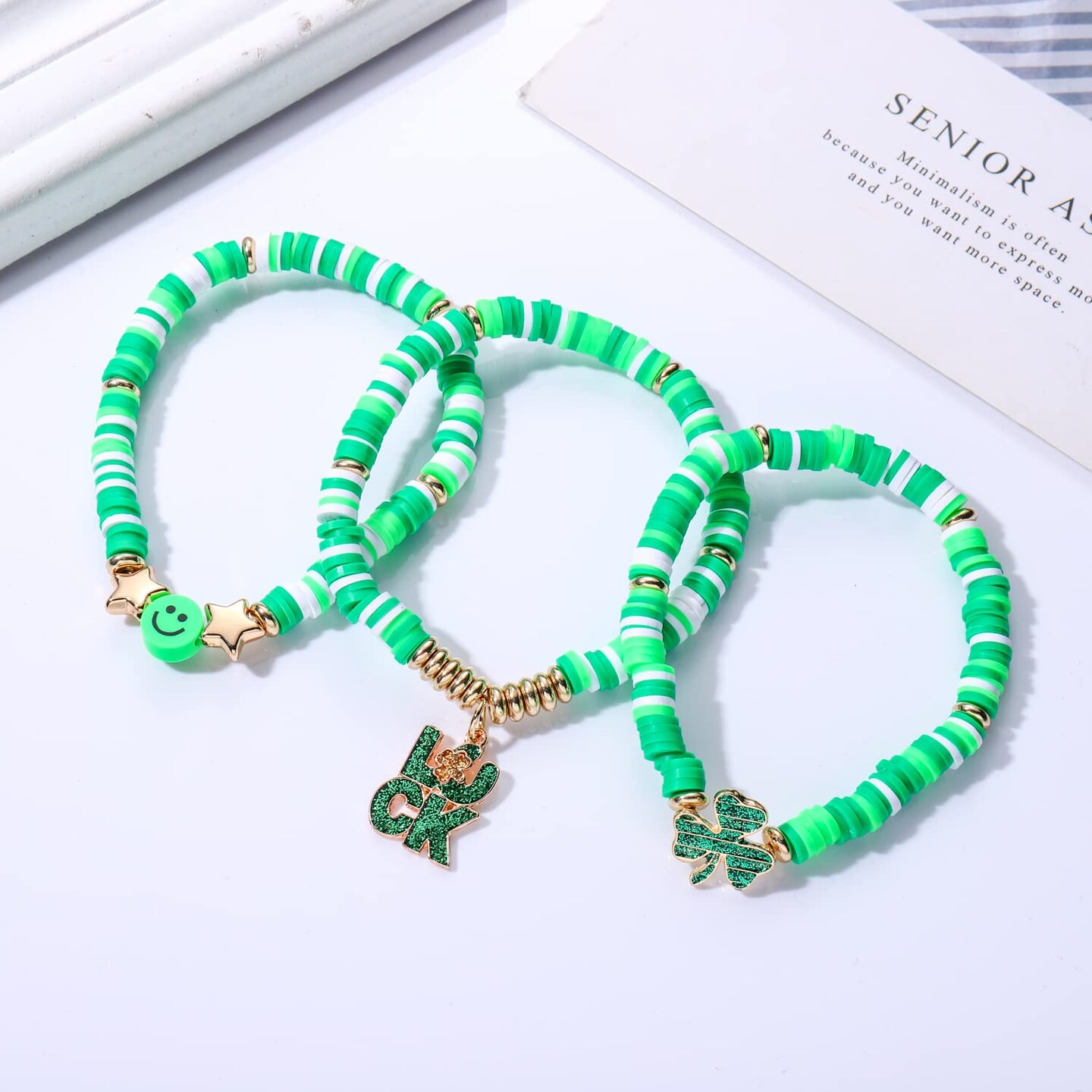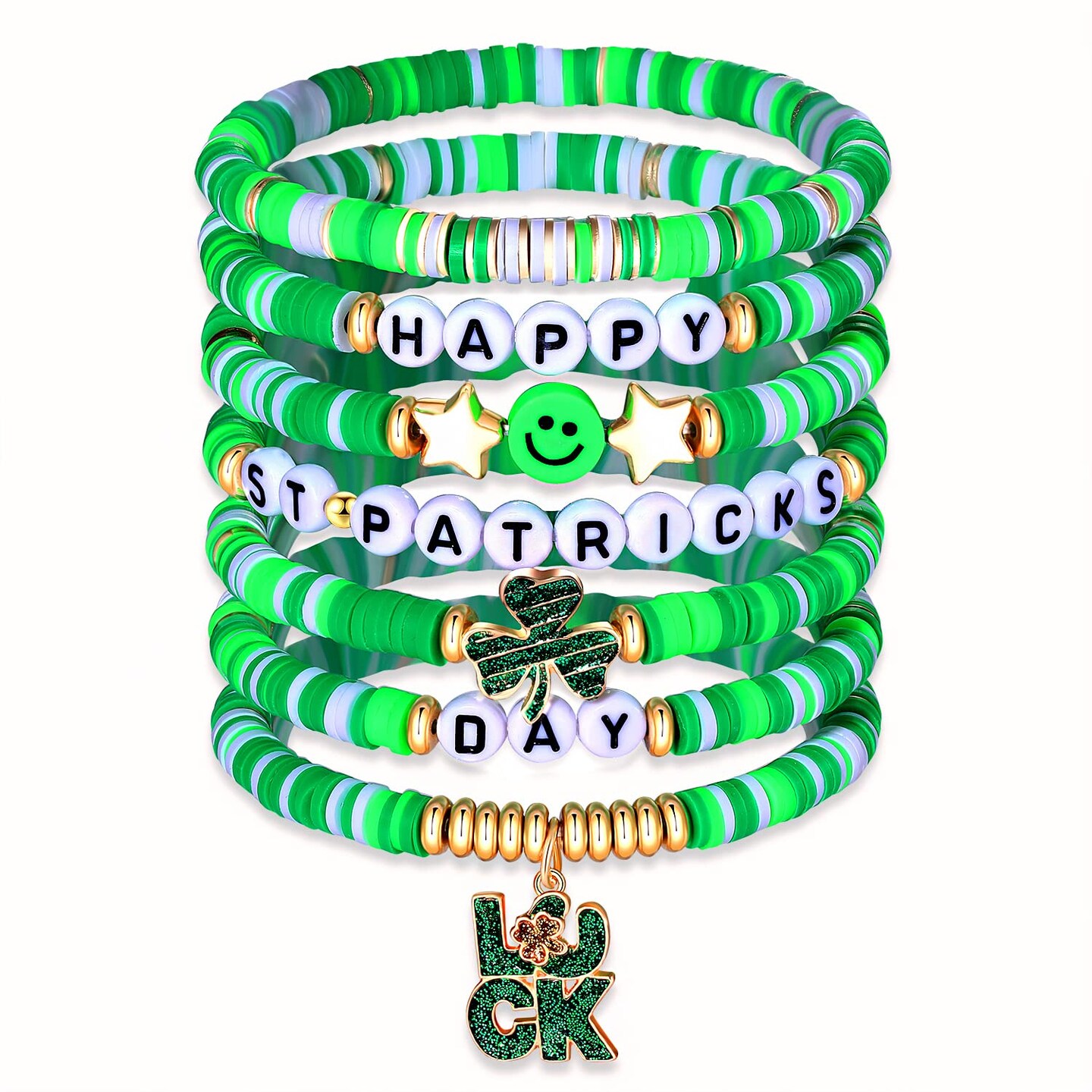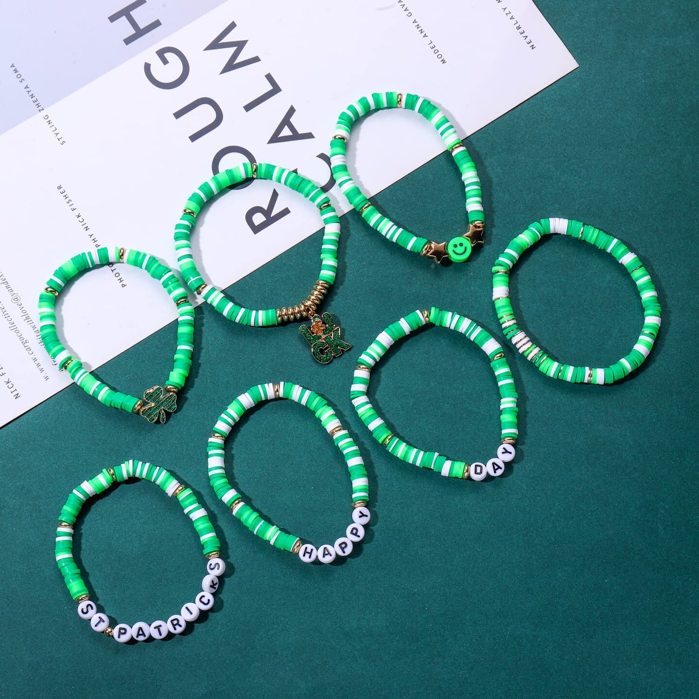 XOCARTIGE Surfer Heishi Bracelets for Women Stackable Rainbow Vinyl Disc Clay Beaded Stretch Bracelets Elastic Layering Friendship Bracelets Boho Summer Beach Jewelry (St.Patrick's Day 1)