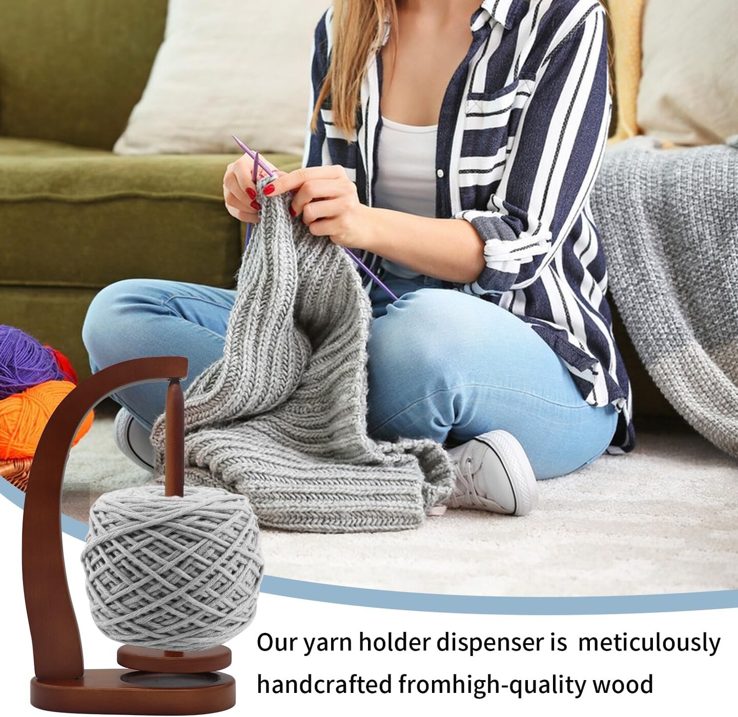 Yarn Holder for Crocheting, Beech Yarn SpinnerWooden Spinners for Crocheting,Yarn Ball Holder (Brown)