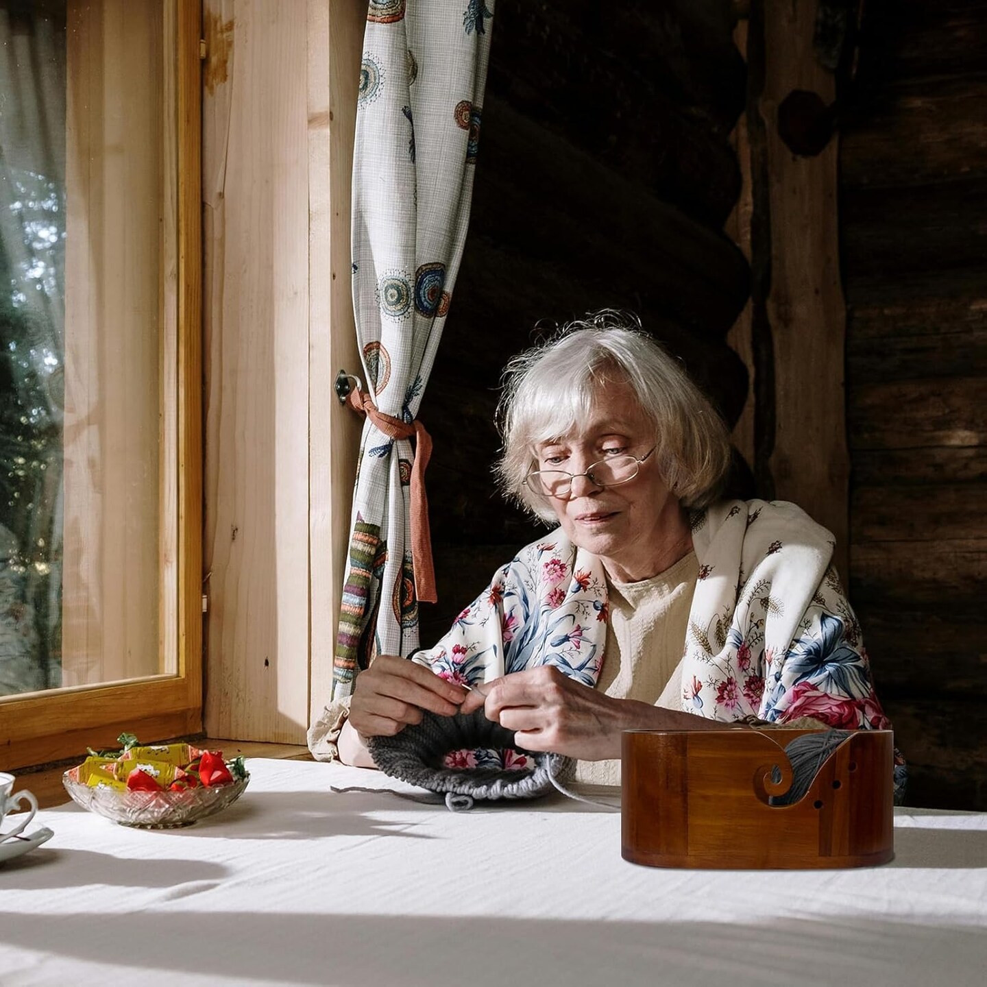 Yarn Storage Bowl Handmade Wood Crochet Accessories,Yarn Bowl Premium Knitting Organizer (Red)