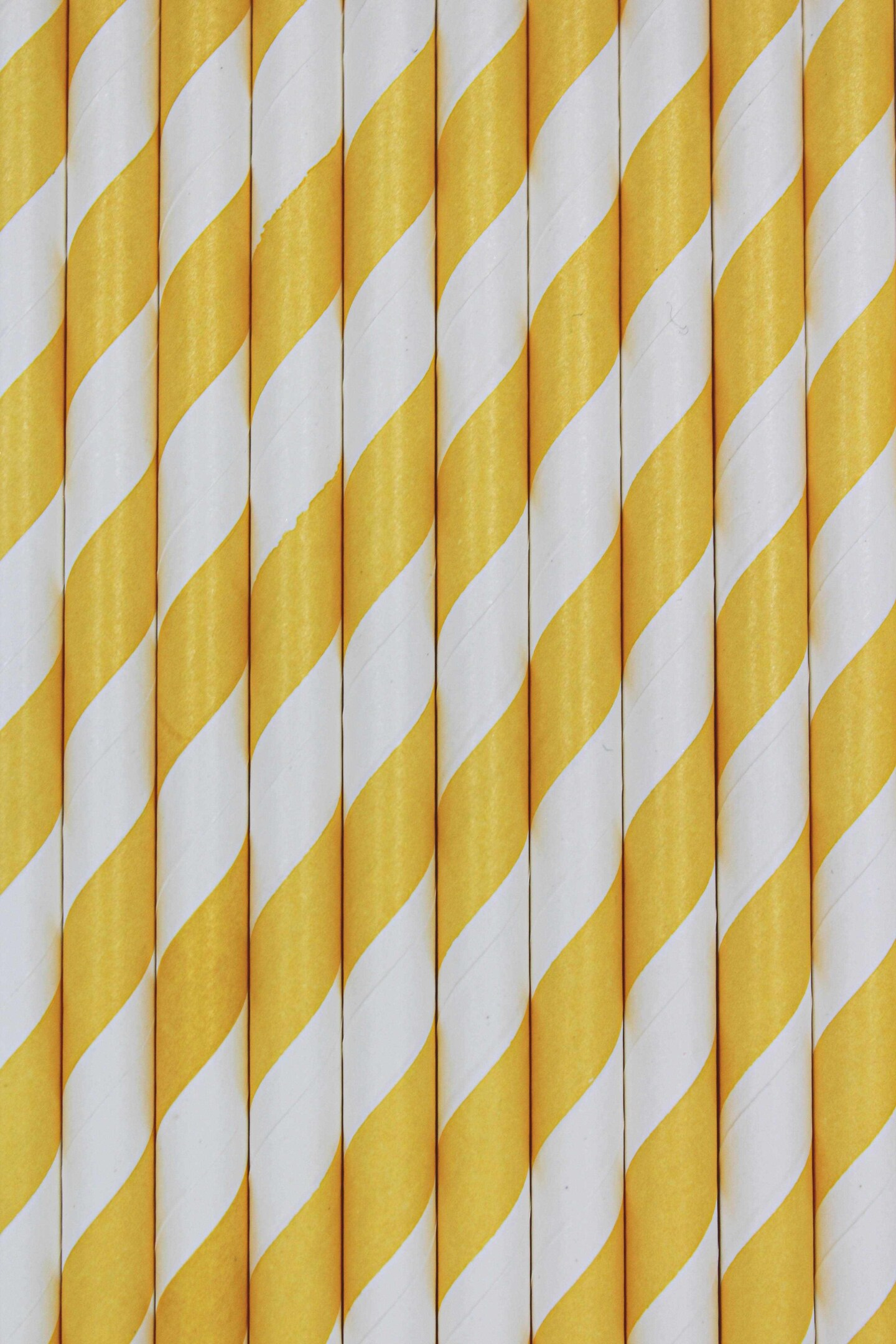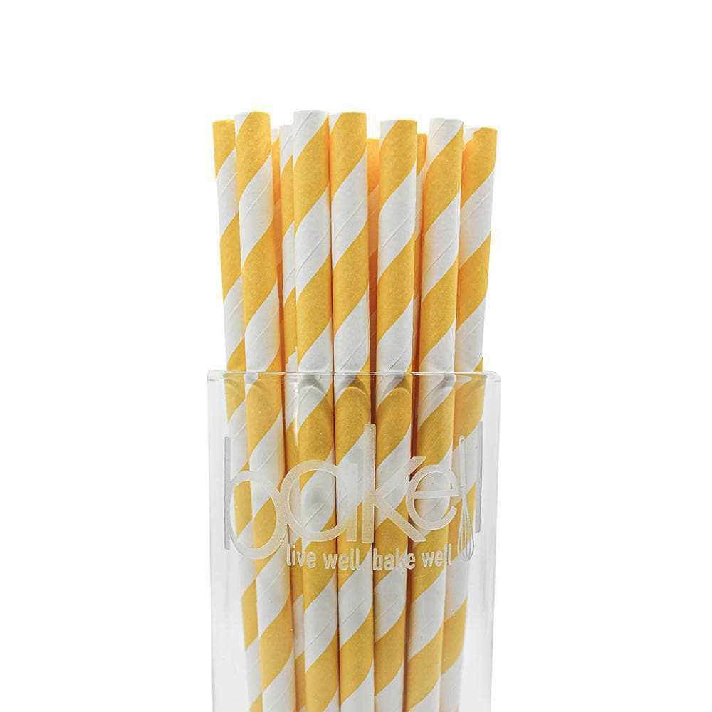 Yellow and White Candy Cane Stripes Cake Pop Party Straws