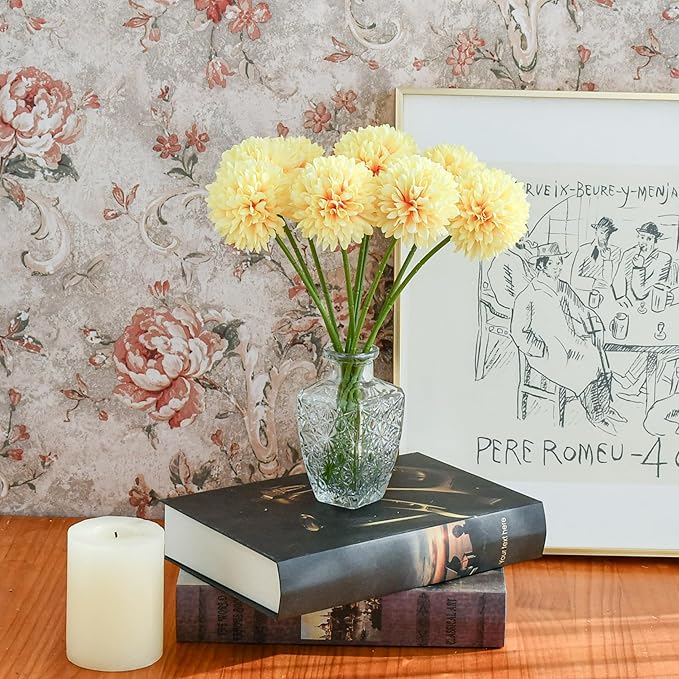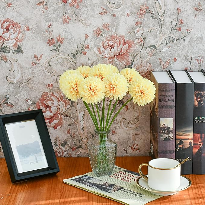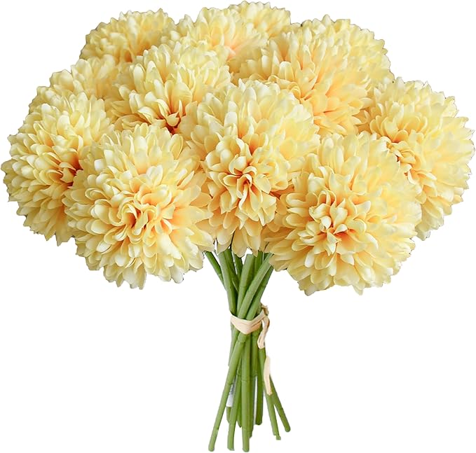 Yellow Artificial Ball Chrysanthemum 12 Stems Faux Flowers with Bendable Stems for Valentine's Day and Easter Decorations DIY Wedding Centerpiece Fall Decor Home Arrangements