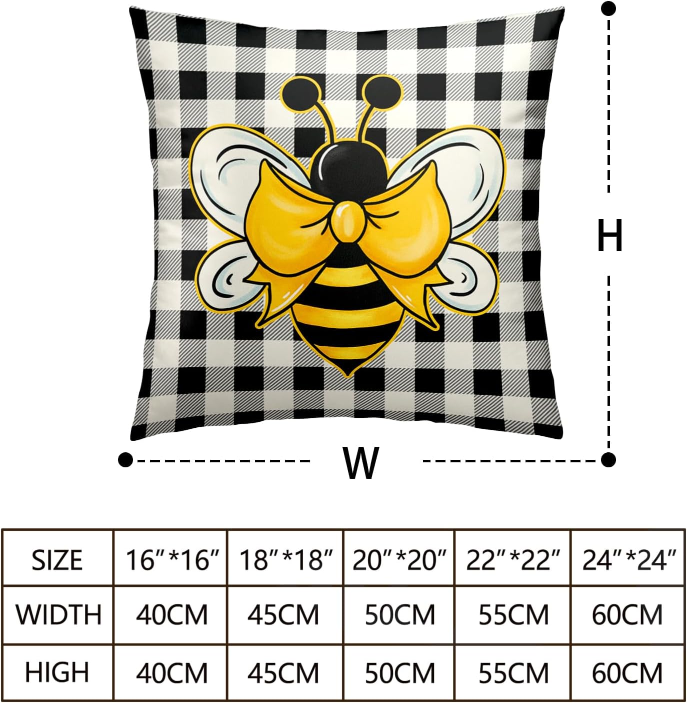 Yellow Bumble Bee Pillow Covers 18x18 Set of 2 Black White Buffalo Plaid Pillow Covers Summer Spring Themed Decorative Cushion Cases Home Decor for Couch Bed Holiday