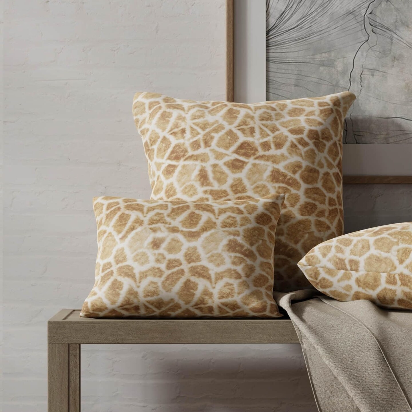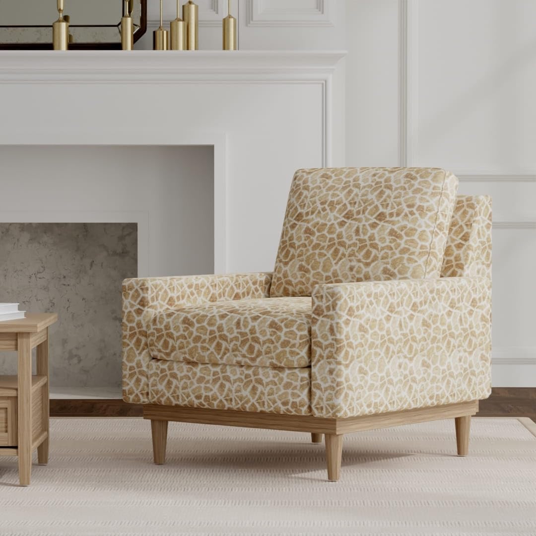 Yellow Giraffe Animal Print Microfiber Print Upholstery Fabric by The Yard - SKU: Laken Bronze