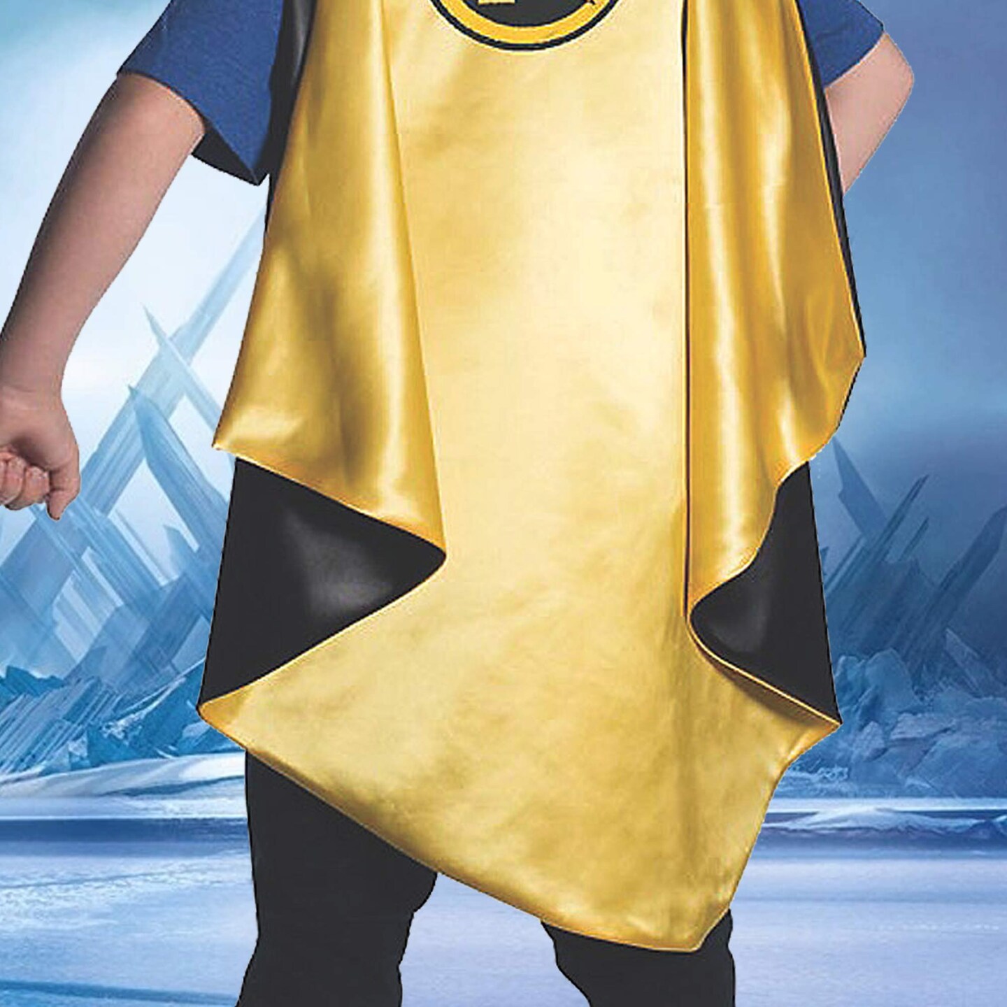 Yellow Robin Costume Cape for Kids with Black Superhero Emblem