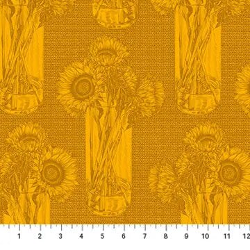 Yellow Sunflowers Indelible by Anna Maria for Northcott Cotton 44"/45" Fabric Per Yard