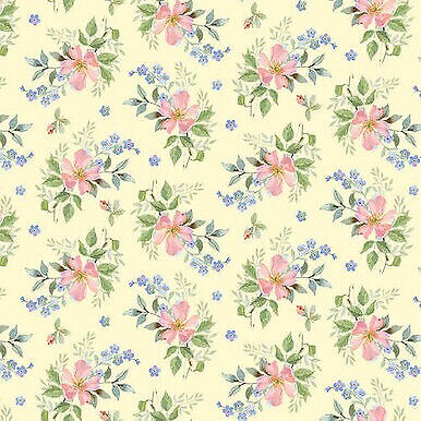 Yellow Tossed Small Roses Garden Inspirations Cotton Fabric by Henry Glass Fab