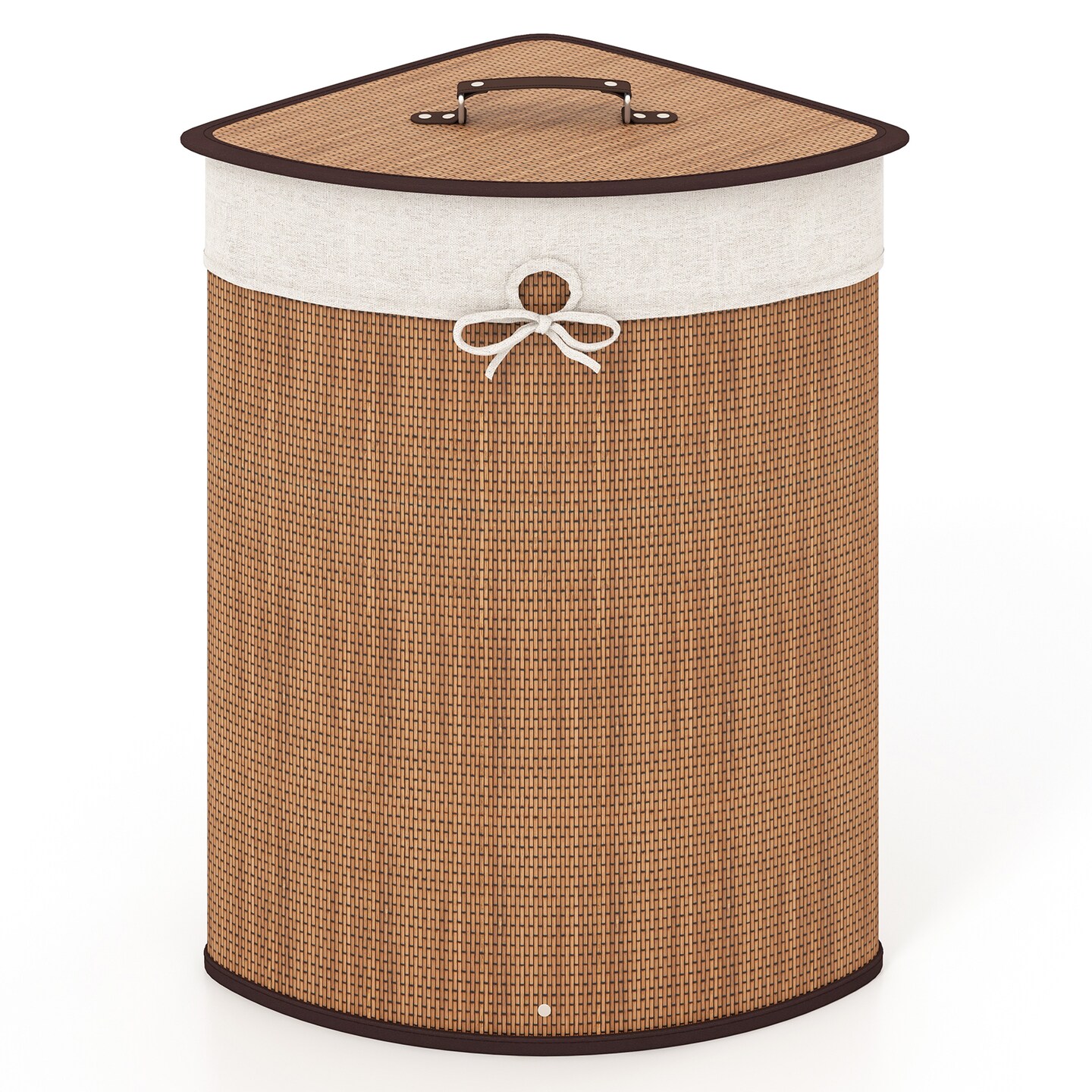Yellow Wicker Corner Laundry Hamper with Lid and Removable Liner, 58L Capacity