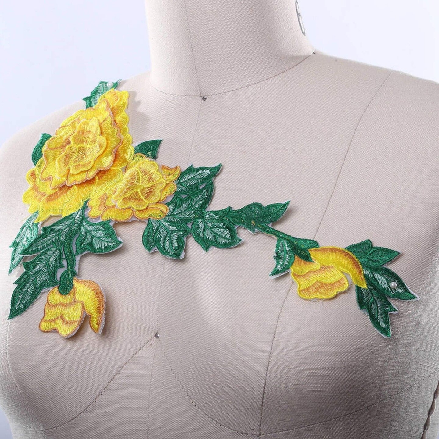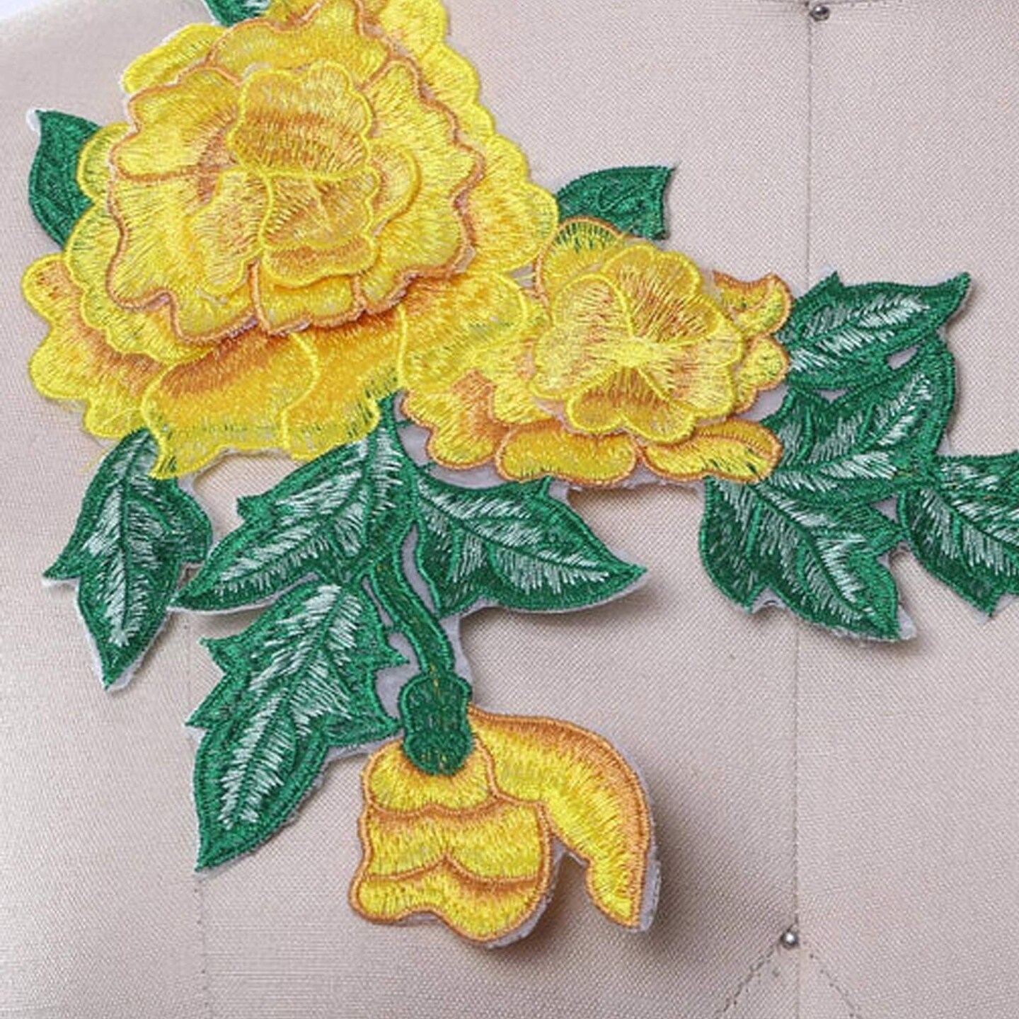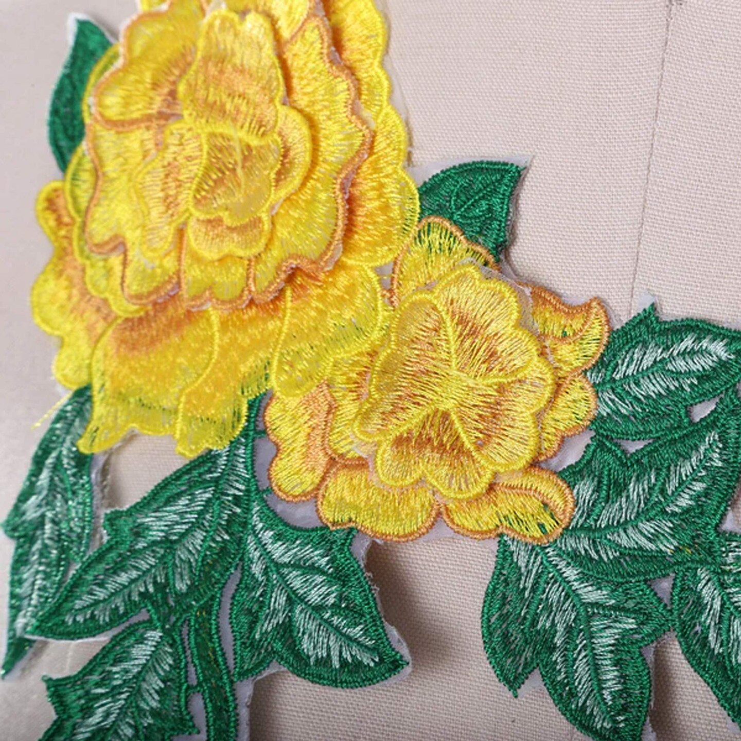 Yellow With Green Embroidered 3D Flower Patch Iron On for Costume and Jackets