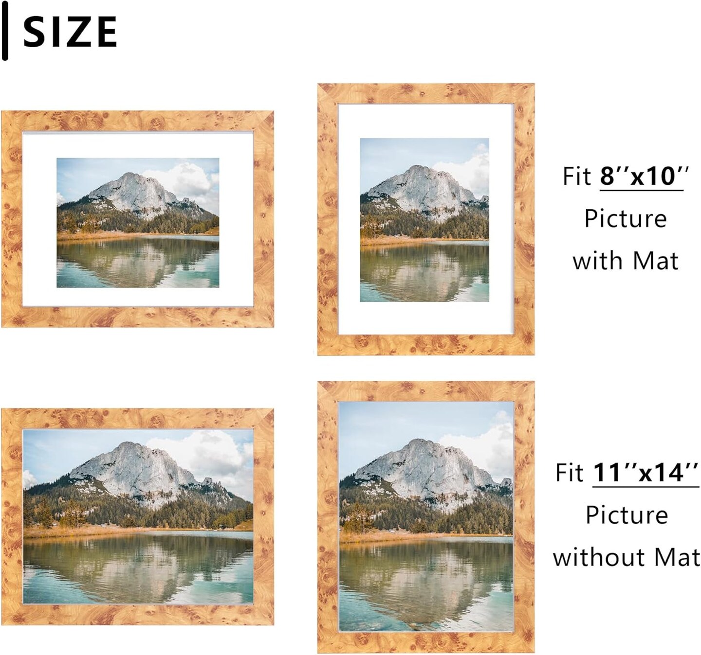 Yellow woodgrain 11x14 Picture Frame, Display 11x14 without Mat or 8x10 with Mat,Wall Gallery Photo Frames