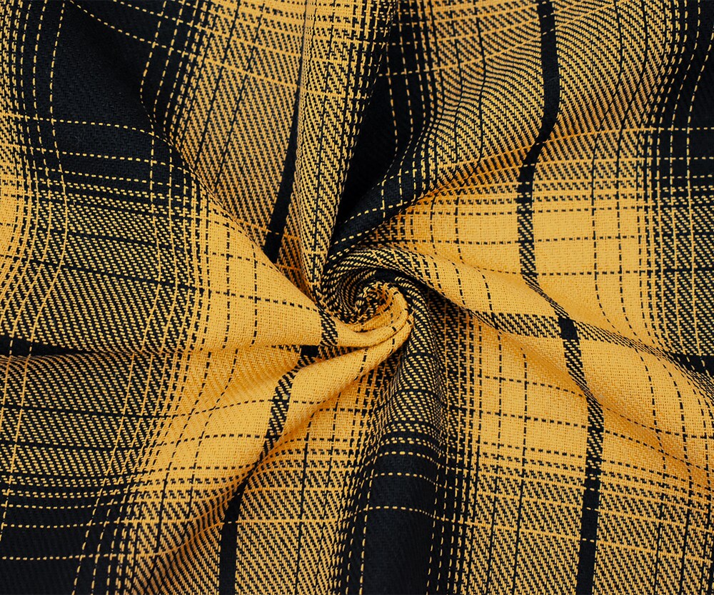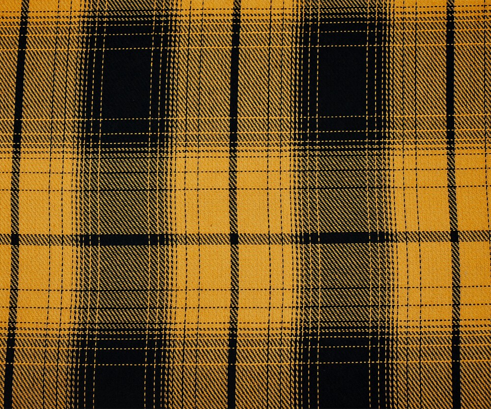 Yellow-Black Melton Poly Wool Single Sided Brushed Plaid Woven Jacketing By the Yard