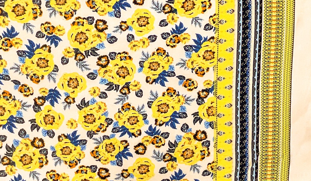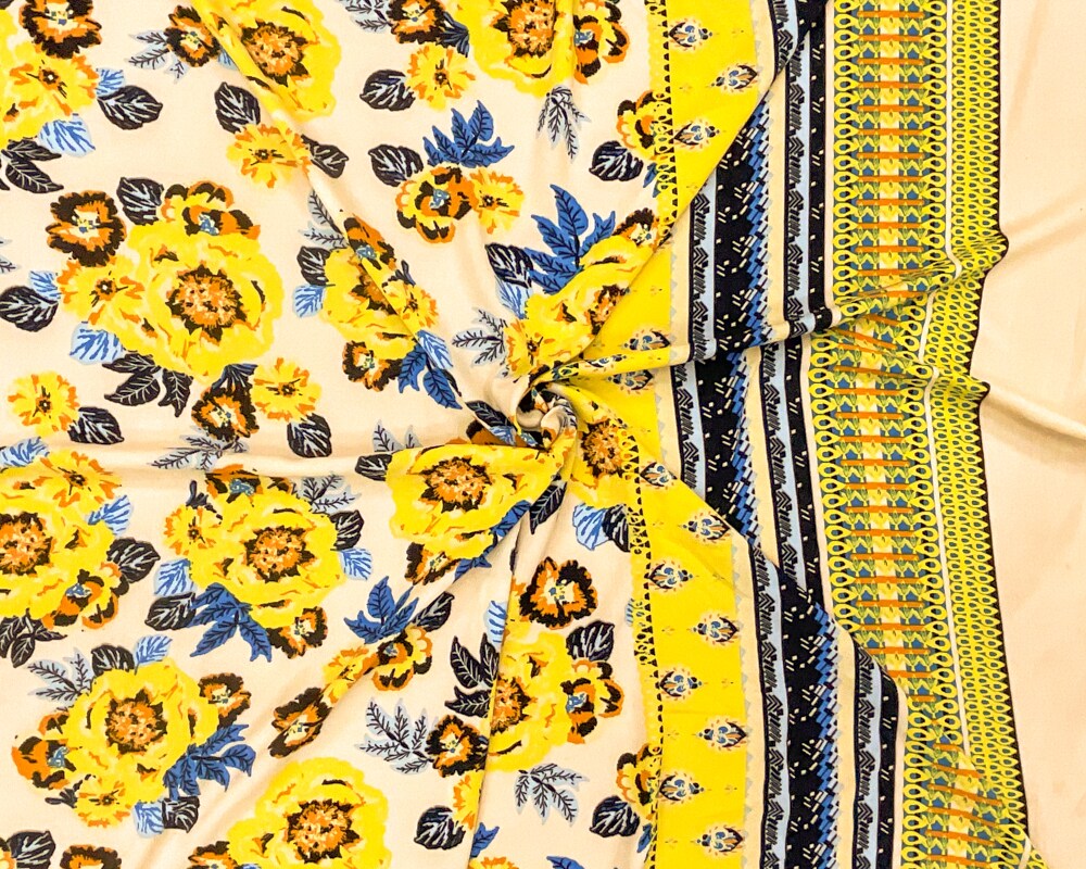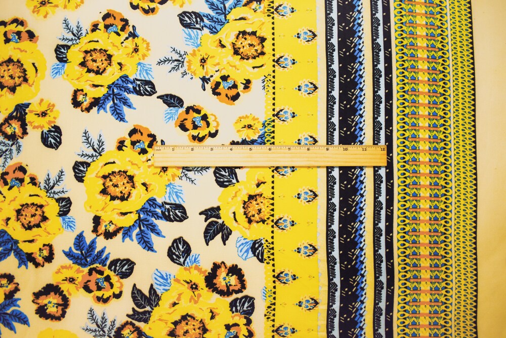 Yellow-Blue-Multi Poly Floral Printed Pebble Crepe Woven Fabric By the Yard