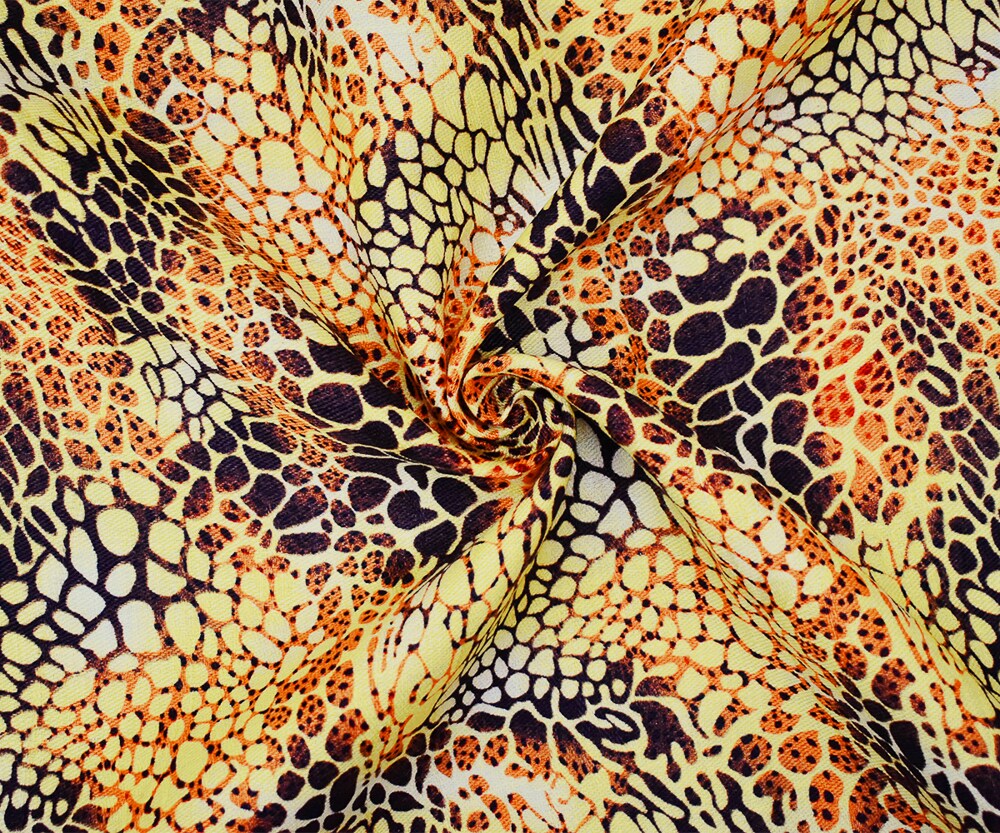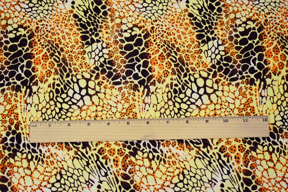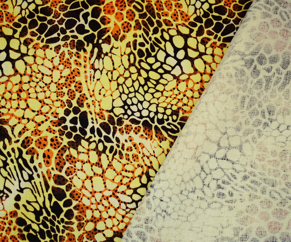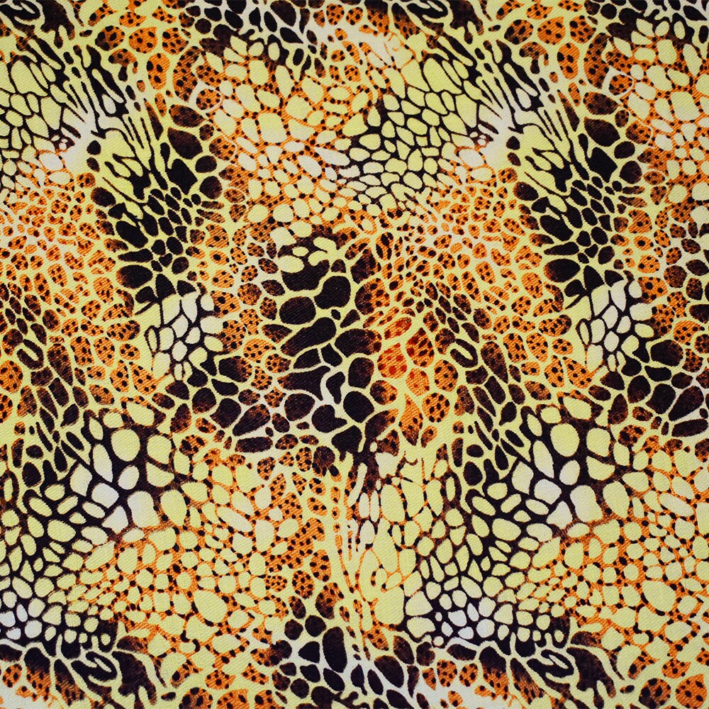 Yellow-Brown-Orange Abstract Cheetah Pattern Printed Linen Twill Fabric By the Yard
