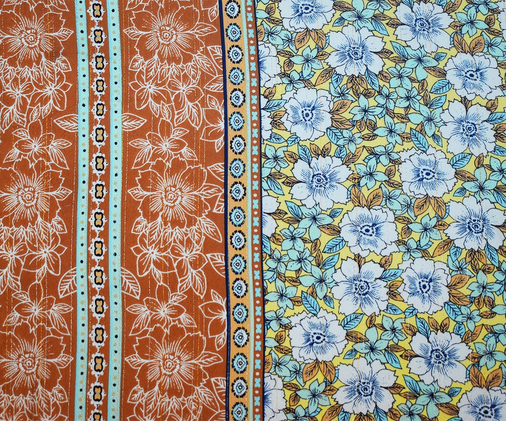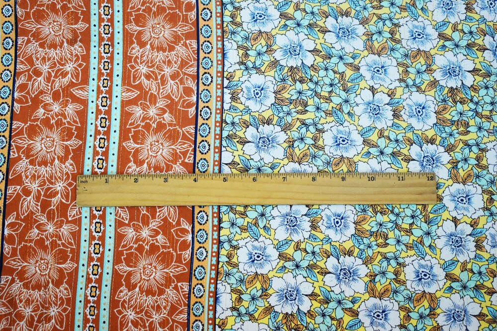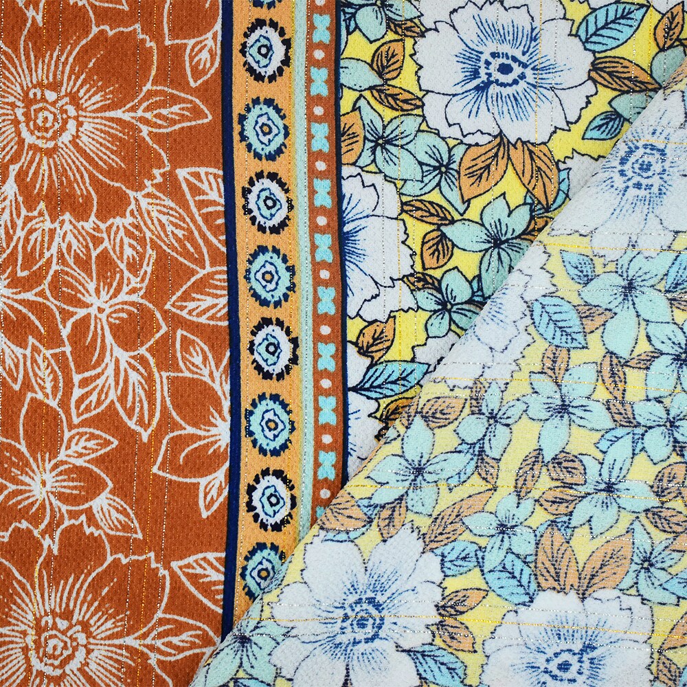 Yellow-Multi Floral Border Print Stretch Metallic Poly Ghost Crepe Fabric By the Yard