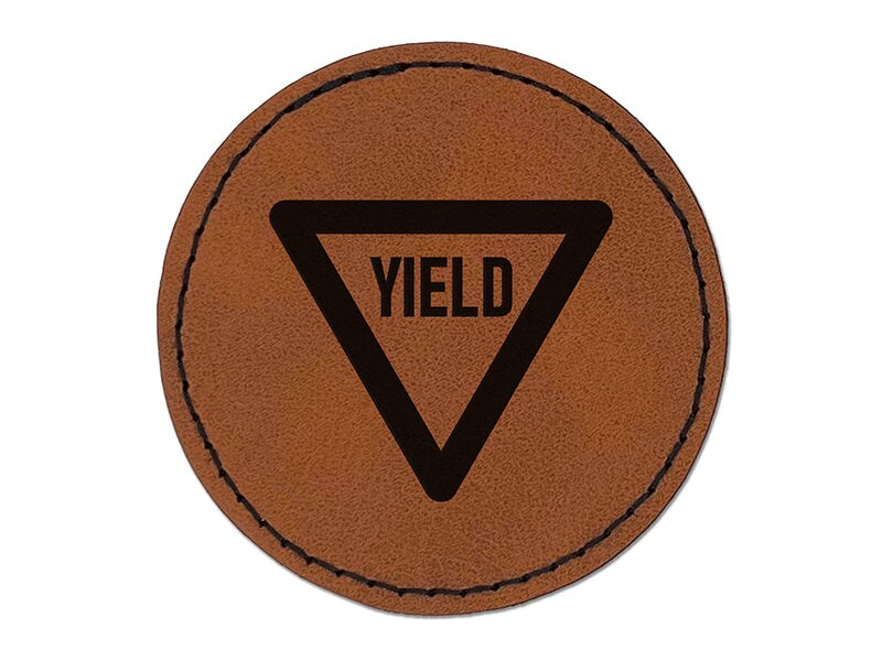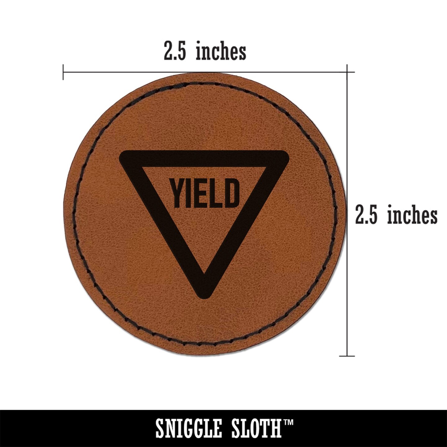 Yield Sign Round Iron-On Engraved Faux Leather Patch Applique - 2.5"
