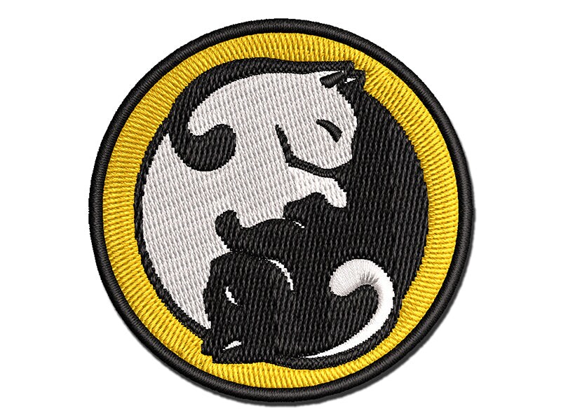 Yin and Yang Cats Curled Up Together Multi-Color Embroidered Iron-On or Hook & Loop Patch Applique
