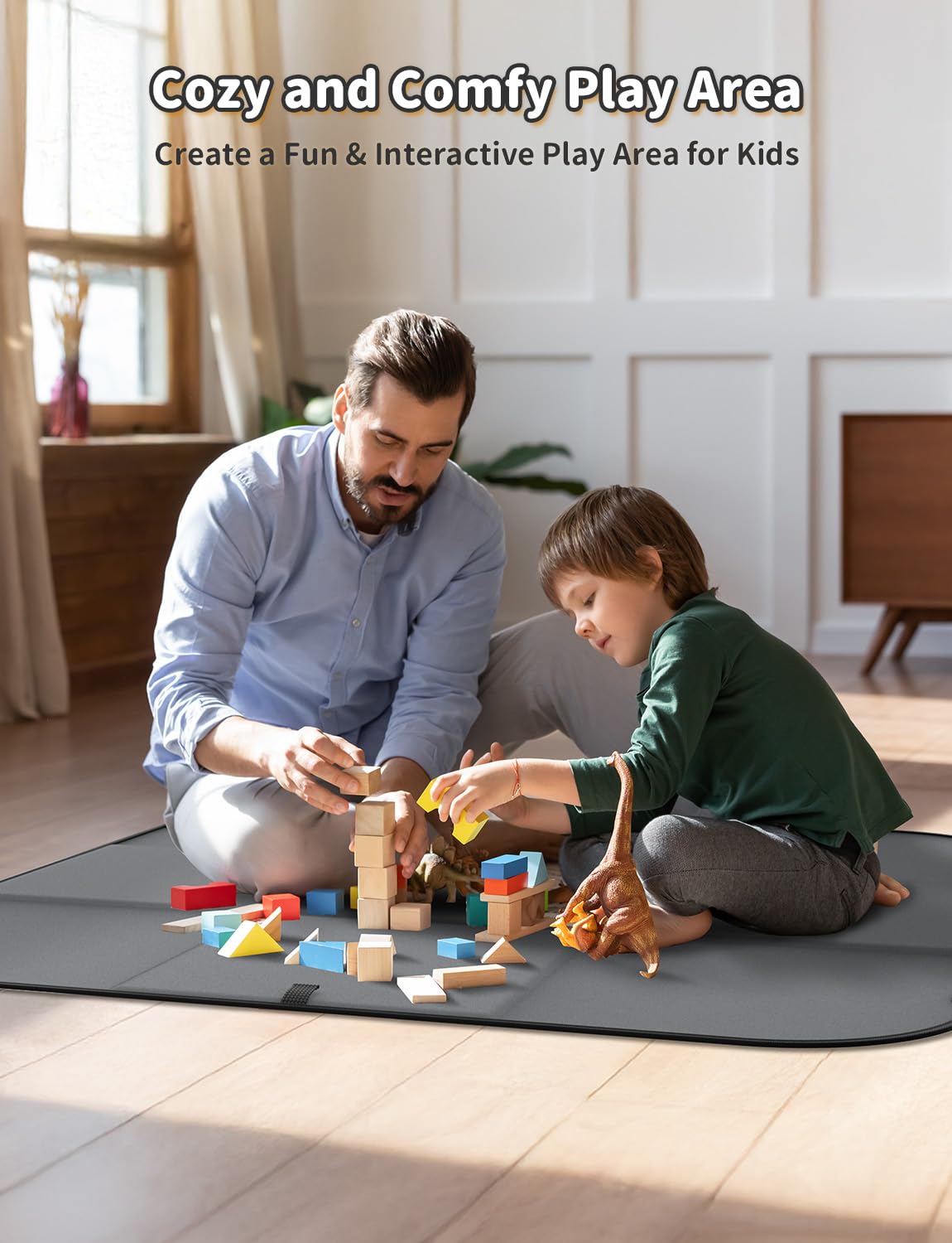 YOHOOLYO Toy Storage Organizer & Play Mat 43.3", Large 15×13×13" Collapsible Storage Cube Bin with Handles for Building Bricks, Boys, Girls, Playroom, Nursery (M, Black)
