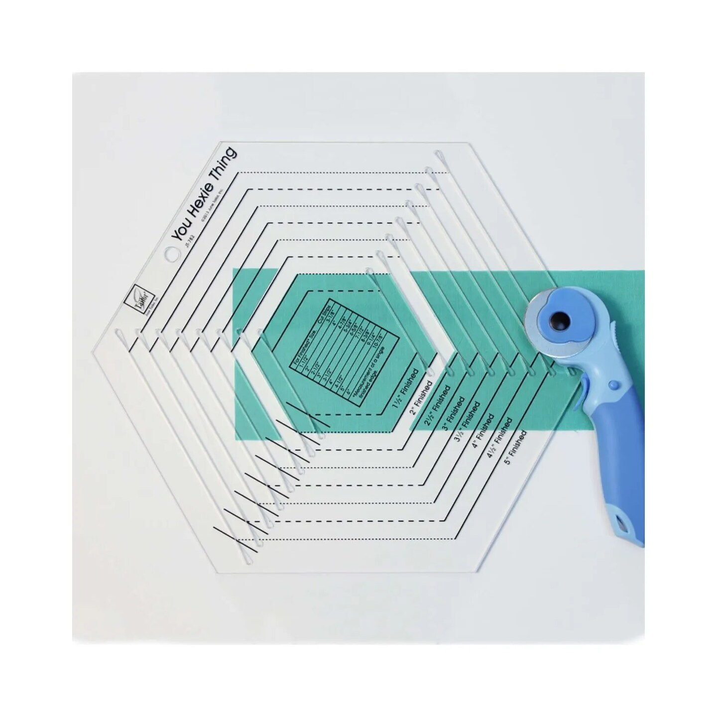 You Hexie Thing Hexagon Ruler – Quilting Template for 1.5"–6" Hexagons, Rotary Cutting Ruler for Piecing & Appliqué