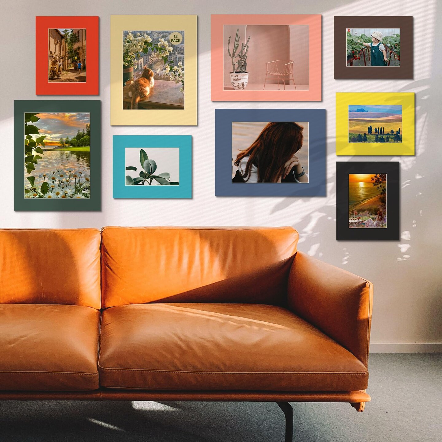 ZBEIVAN 12 Packs Mixed Colors 11x14 Picture Frame Mats for 8.5x11 Photos, Artworks and Prints, White Core Bevel Cut Frame Mattes