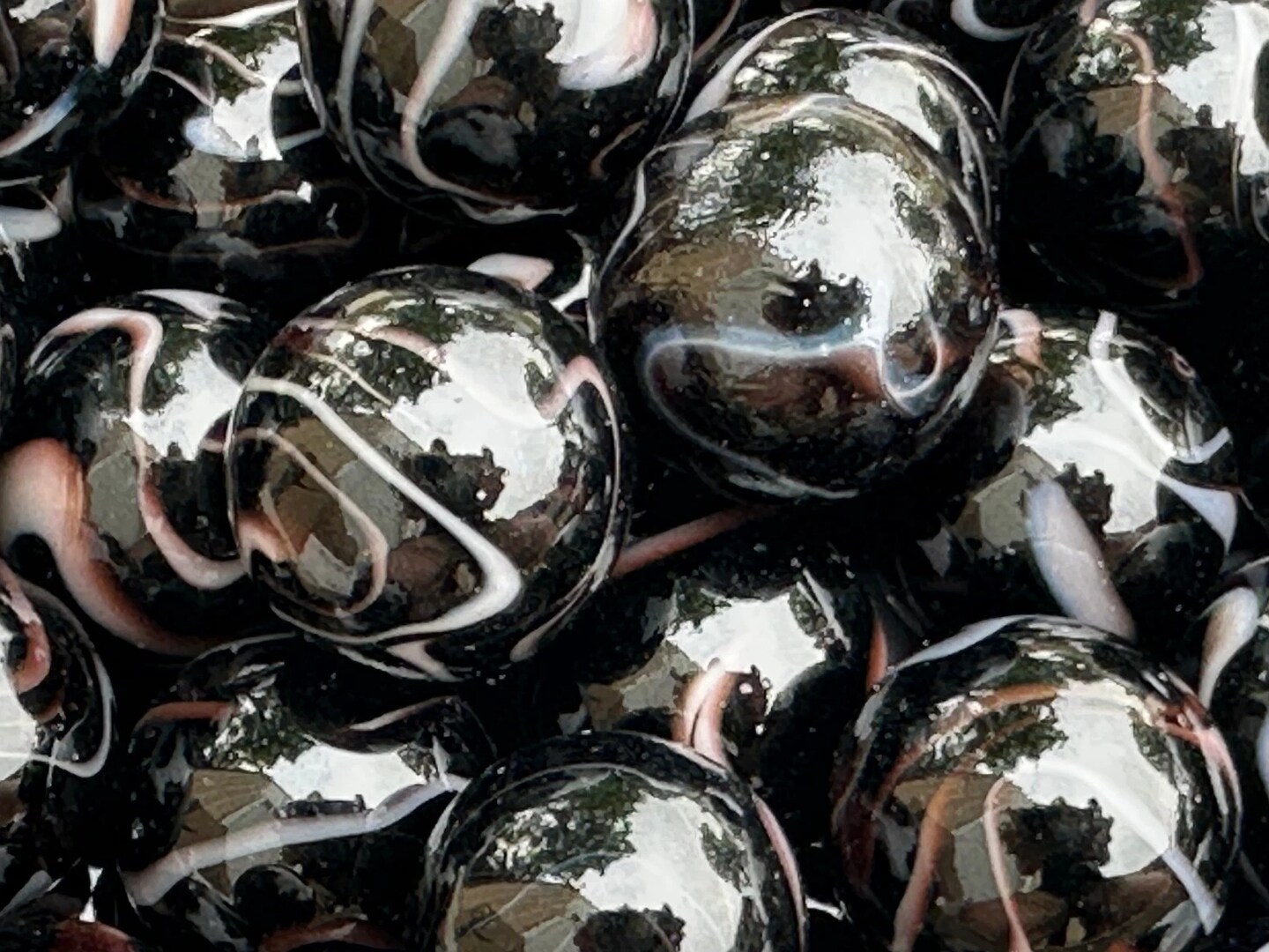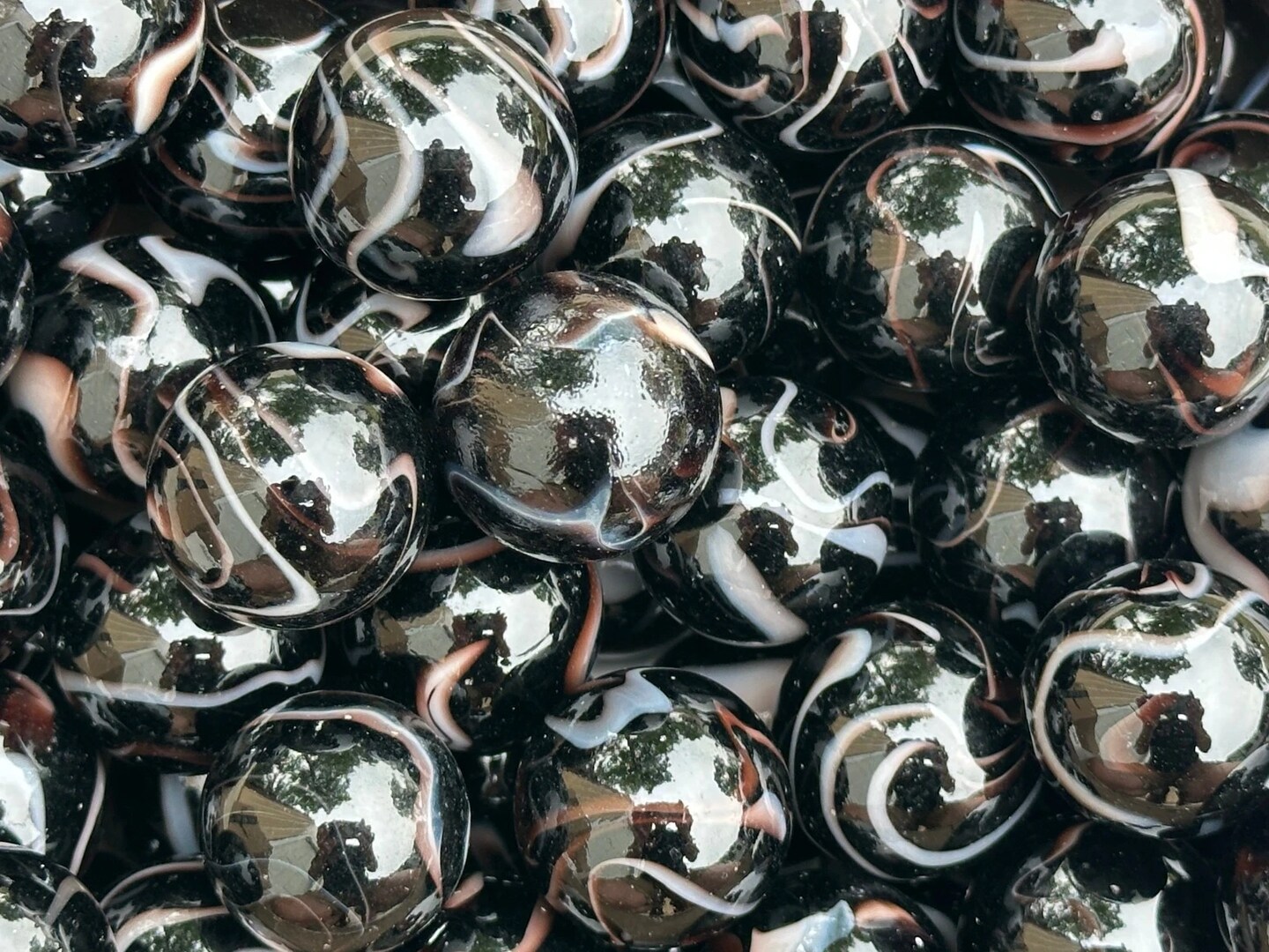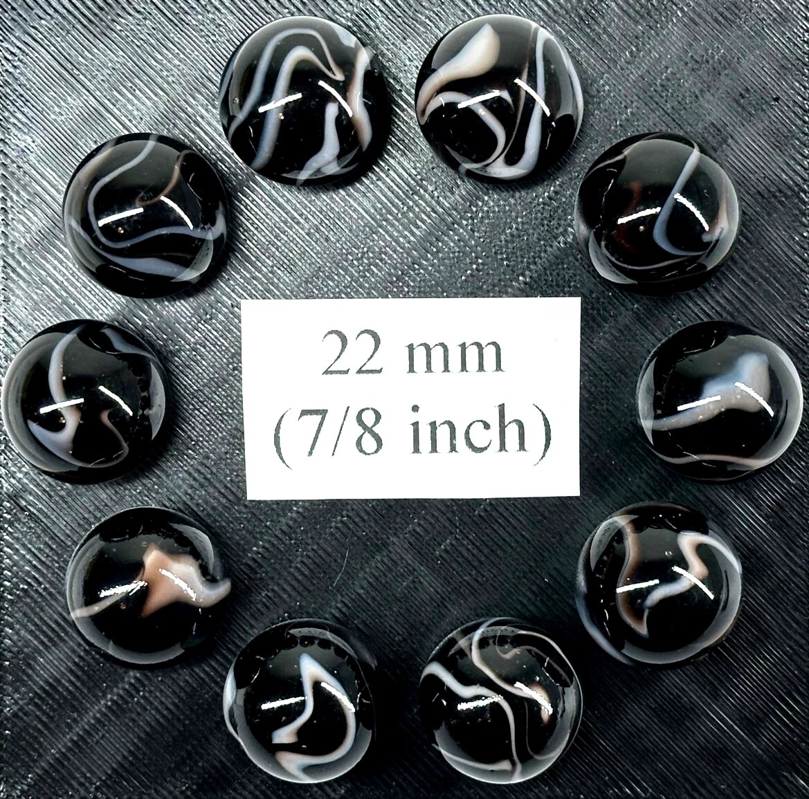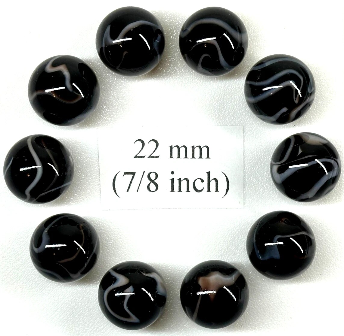 ZEBRA Black/White Glass Marbles 22mm (7/8 inch) SHOOTER Taw (Lot of 10)