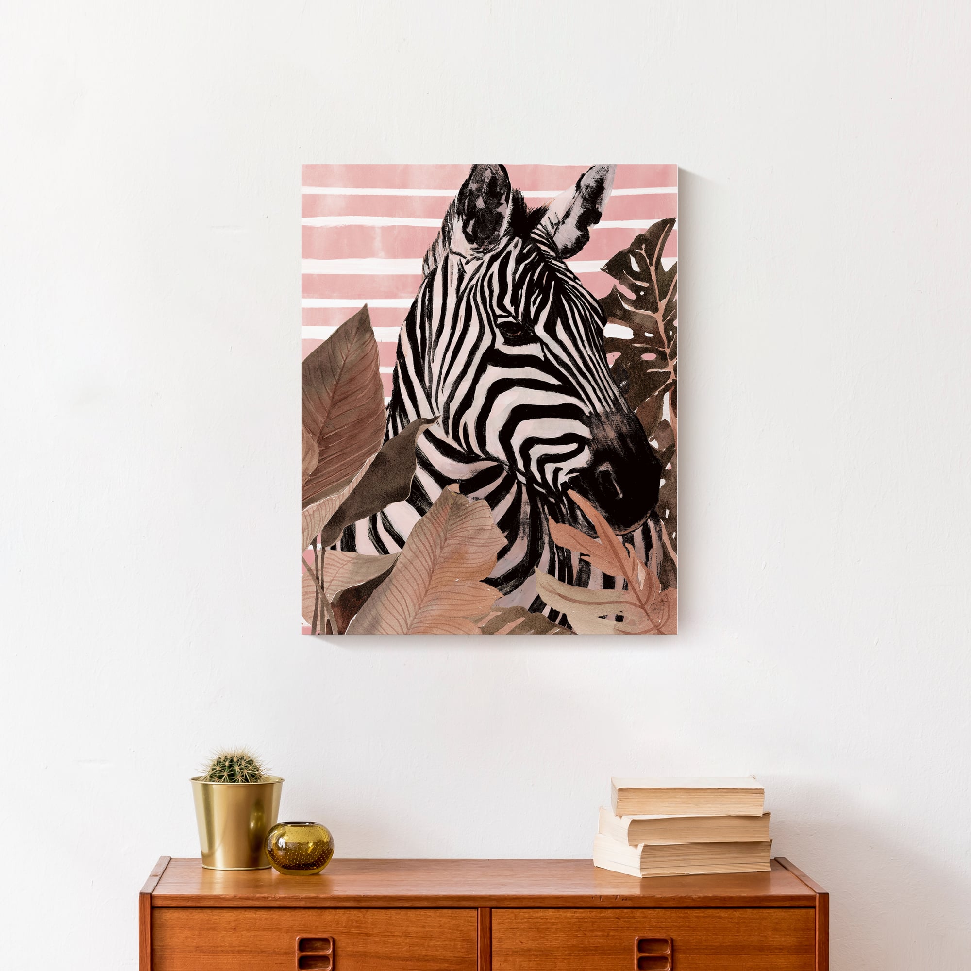 Zebra In Palms 16" x 20" Canvas Wall Art