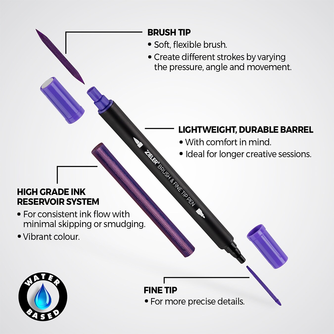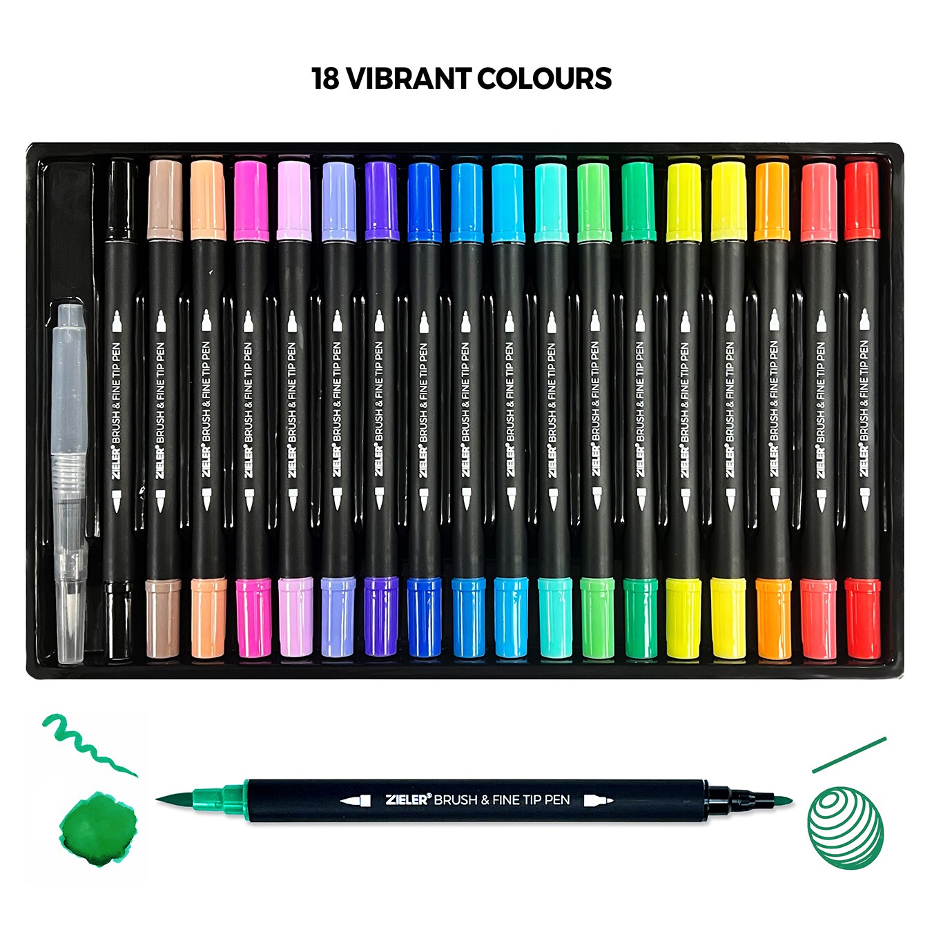 Zieler® 18 Brush & Fine Tip Pens with Water Brush