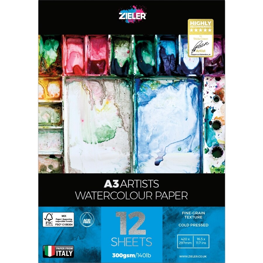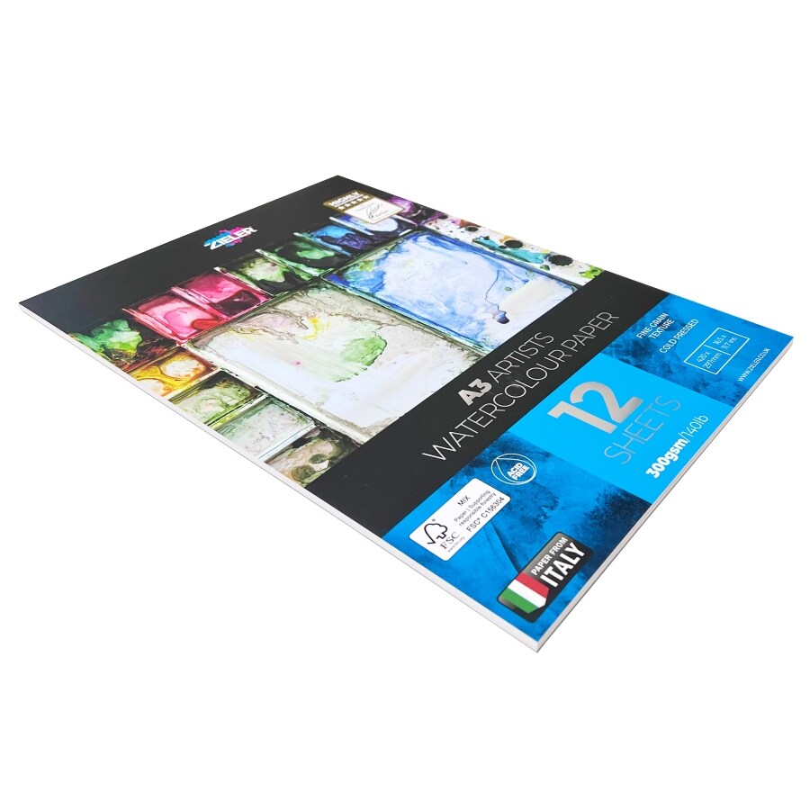Zieler A3 Watercolour Paper Gummed Pad – 300gsm, 12 sheets