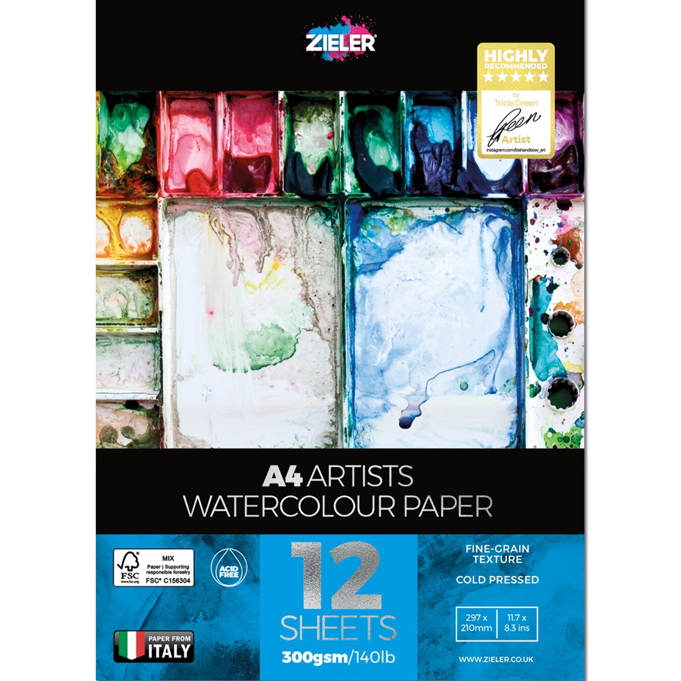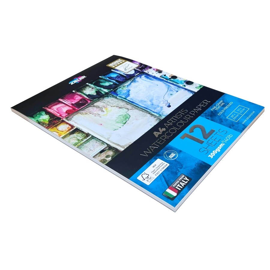 Zieler A4 Watercolour Paper Gummed Pad – 300gsm, 12 sheets