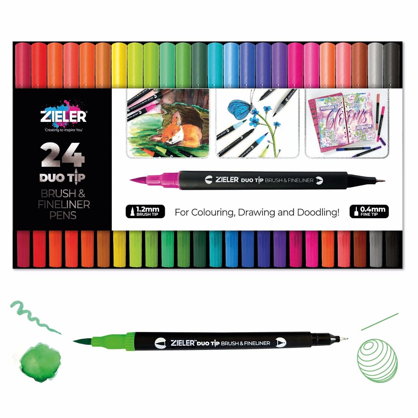 Zieler® Fineliner Pens / Brush Pens (Duo Tip, set of 24)