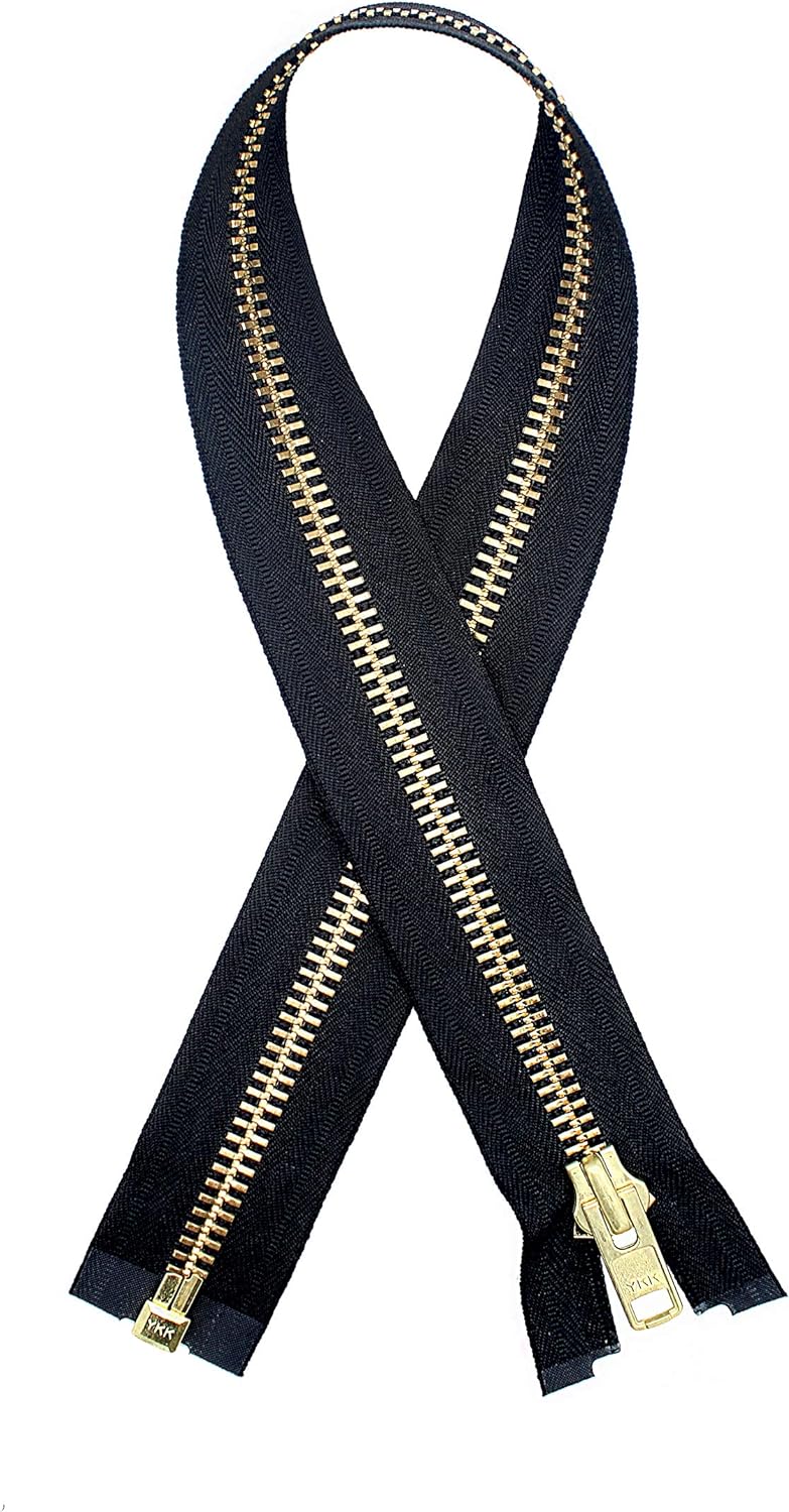 Zipperstop Wholesale YKK®- Extra Heavy Duty Jacket Zipper YKK® #10 Brass- Metal Teeth Separating -Chaps Zippers for Crafter's Special Color Black #580 Made in USA -Custom Length (24 inches)