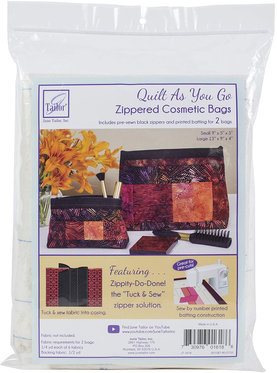 Zippity-Do-Done Cosmetic Bags Kit (2) – Quilt-As-You-Go Bags with Pre-Sewn Black Zippers, 2 Sizes