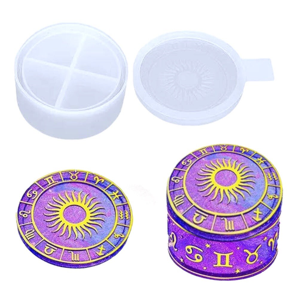 Zodiac Constellation Trinket Container With Sun Lid Mold for Epoxy Resin Art