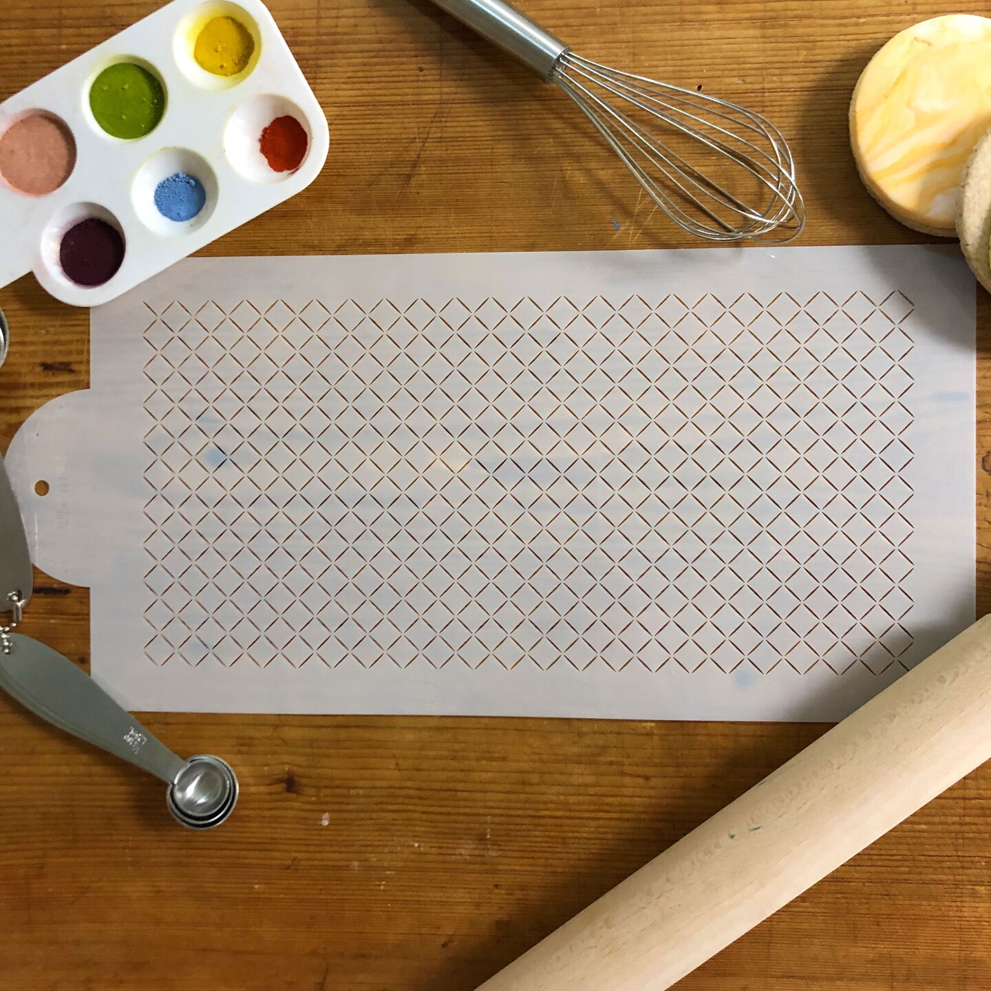 Zoe Clark (1 cm) Diamond Netting Cake Stencil Side | C1038 by Designer Stencils | Cake Decorating Tools | Baking Stencils for Royal Icing, Airbrush, Dusting Powder | Reusable Plastic Food Grade Stencil for Cakes | Easy to Use & Clean Cake Stencil