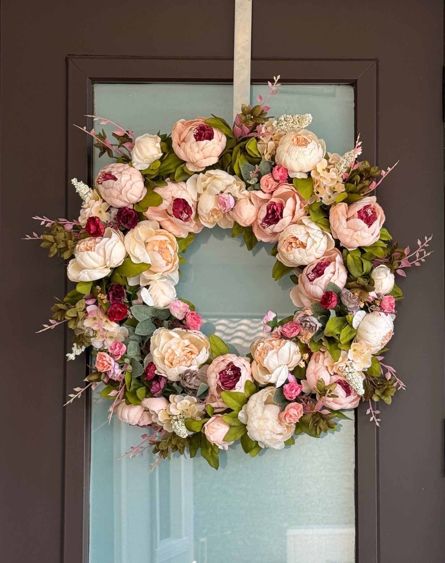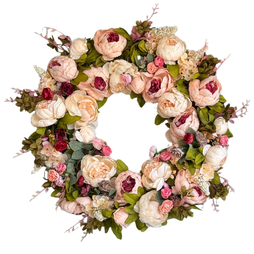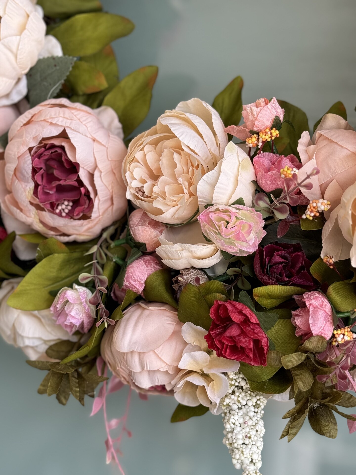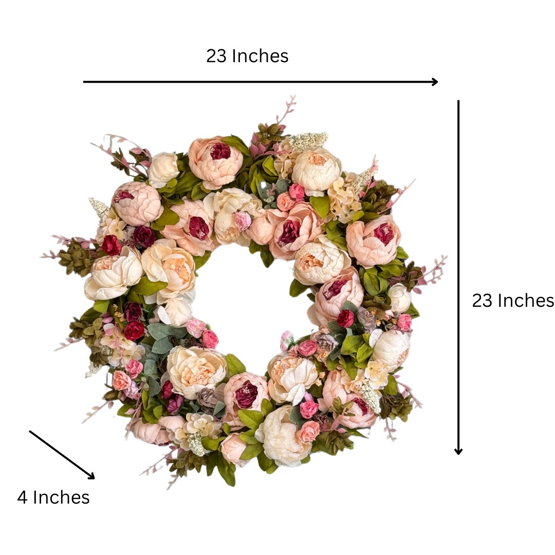 Zoey Blush Burgundy Silk Peony Flower Wreath 23" All Season Indoor Outdoor Fall Autumn