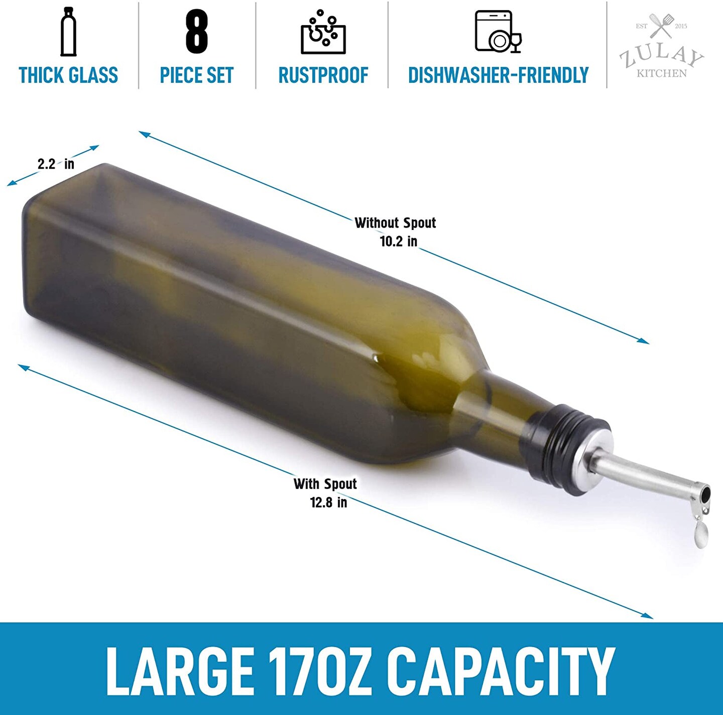 Zulay ZK Olive Oil Bottle Dispenser with Spout - Clear Bottle